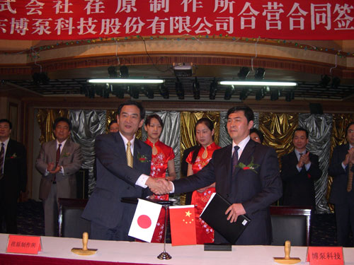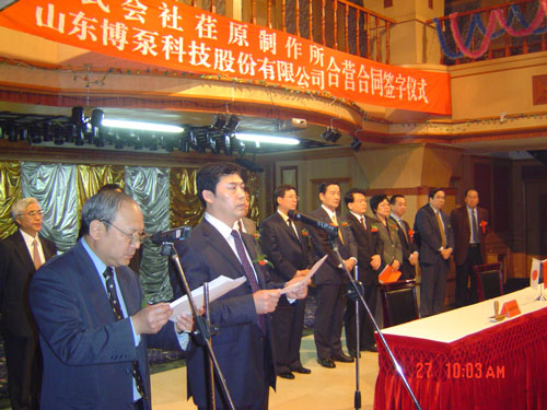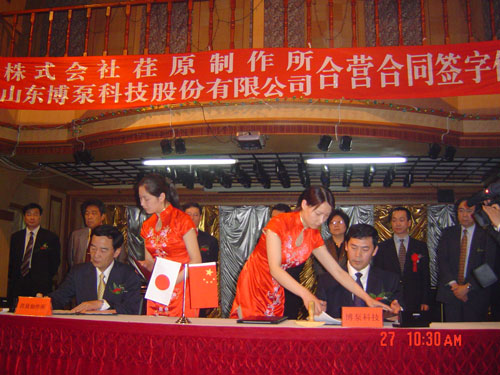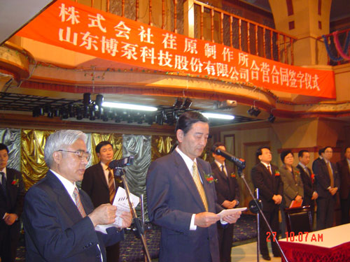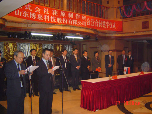 新聞中心 2005年4月27日,在博山萬杰國際大酒店山東博泵科技股份有限公司與日本株式會(huì)社荏原制作所正式簽署了注冊(cè)資本1100萬美元的合營(yíng)公司――荏原博泵有限責(zé)任公司。該公司的建立將通過引進(jìn)世界最大的泵企業(yè)――日本株式會(huì)社荏原制作所的先進(jìn)技術(shù),加快大型泵、高壓泵國產(chǎn)化進(jìn)程,建成具有國際競(jìng)爭(zhēng)力的一流企業(yè)。為中國水電、核電及超臨界火電項(xiàng)目,為南水北調(diào)等大型水力工程提供高質(zhì)量、高技術(shù)含量的一流泵產(chǎn)品,提升中國機(jī)械工業(yè)技術(shù)、質(zhì)量水平,促進(jìn)產(chǎn)品更新?lián)Q代,為中國電力、冶金、水力事業(yè)的發(fā)展乃至中國國民經(jīng)濟(jì)的發(fā)展做出應(yīng)有的貢獻(xiàn)。