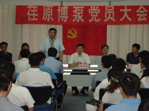 本次黨員大會(huì)由黨總支副書記姜作棟同志主持,他首先介紹了黨組織機(jī)構(gòu)的組成:張玉琴同志任黨總支書記,姜作棟同志任黨總支副書記,李正民同志、劉擁民同志、王興春同志分別任統(tǒng)戰(zhàn)委員、組織紀(jì)檢委員、文體宣傳委員。荏原博泵黨總支下設(shè)管理、生產(chǎn)、質(zhì)量和業(yè)務(wù)技術(shù)四個(gè)黨支部,管理黨支部書記由邱建剛同志擔(dān)任,生產(chǎn)黨支部書記由宋遵民同志擔(dān)任,質(zhì)量黨支部書記由郝圣同志擔(dān)任,業(yè)務(wù)技術(shù)黨支部書記由梁文運(yùn)同志擔(dān)任。各黨支部通過民主選舉選出了支部委員。在會(huì)上,黨總支書記張玉琴同志向全體黨員提出要求,一是加強(qiáng)學(xué)習(xí),提高素質(zhì);二是增強(qiáng)黨性,努力工作;三是加強(qiáng)領(lǐng)導(dǎo),發(fā)揮作用。著重強(qiáng)調(diào)了全體黨員不僅要有較高的政治素質(zhì),更要有很強(qiáng)的業(yè)務(wù)能力和技術(shù)水平。要一如既往的發(fā)揮黨員的先鋒模范作用,以企業(yè)經(jīng)濟(jì)發(fā)展為中心任務(wù),身先士卒,帶頭努力干好工作,在營(yíng)造團(tuán)結(jié)和諧的工作氛圍中發(fā)揮作用。公司總經(jīng)理孫龍平同志在黨員大會(huì)上代表行政領(lǐng)導(dǎo)班子作了重要發(fā)言,指出目前公司正處在打基礎(chǔ)的關(guān)鍵時(shí)期,邊建設(shè)、邊生產(chǎn)、邊供貨、邊發(fā)展。黨組織要充分發(fā)揮政治核心作用,領(lǐng)導(dǎo)工會(huì)、共青團(tuán)等群眾組織,團(tuán)結(jié)凝聚廣大員工,貫徹黨的方針政策,促進(jìn)企業(yè)健康發(fā)展。