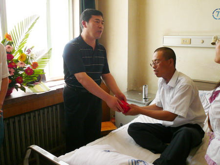 6月24日,公司總經(jīng)理孫龍平,黨總支書記張玉琴及人力資源部部長姜作棟等一行,專程到德州人民醫(yī)院,將寄托著廣大員工深情厚誼的28150元捐款送到了孫富強(qiáng)的病榻前。鼓勵(lì)他要積極樂觀,堅(jiān)定戰(zhàn)勝病魔的信心,期盼著他早日康復(fù),重返工作崗位。