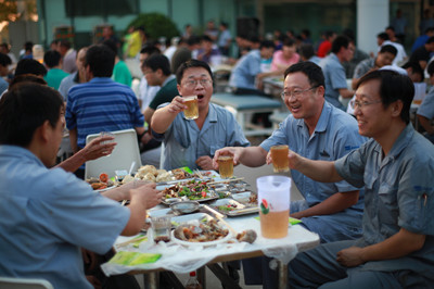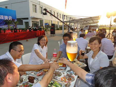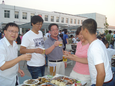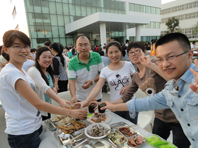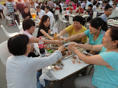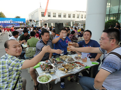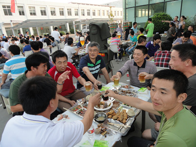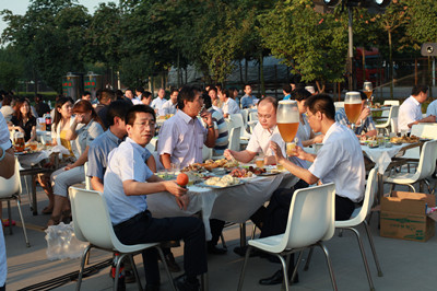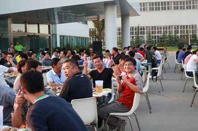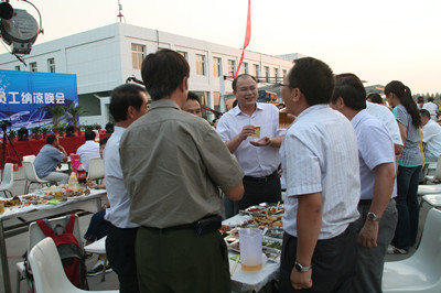 17:30分, “第四屆員工納涼晚會(huì)”正式開(kāi)始。首先是員工聚餐。近400名員工,伴著歡快的樂(lè)曲聲,推杯換盞,大快朵頤。公司總經(jīng)理志賀進(jìn)、常務(wù)副總經(jīng)理王正軍等公司領(lǐng)導(dǎo)走入員工中,與員工們親切交談,敬酒祝愿,整個(gè)會(huì)場(chǎng)洋溢著一張張歡樂(lè)的笑臉。