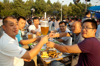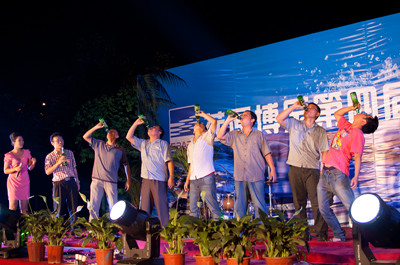穿插其間的互動(dòng)游戲――喝啤酒比賽,員工們爭(zhēng)先恐后的參加,最后“啤酒王”的桂冠由公司采購(gòu)部員工陳永泰獲得。為整個(gè)晚會(huì)增添了歡樂(lè)的氣氛。