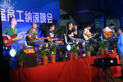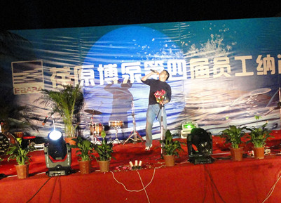 18:30分,晚會(huì)節(jié)目正式開(kāi)始,首先在晨曦樂(lè)隊(duì)激情飛揚(yáng)的搖滾歌曲聲中拉開(kāi)了晚會(huì)的序幕。晚會(huì)節(jié)目有獨(dú)唱、小合唱、舞蹈等等,演員們的精彩表演,博得了員工們陣陣掌聲和喝彩。特別是生產(chǎn)部門(mén)女職工排練的舞蹈,動(dòng)感十足,展示了女員工的多姿多彩的精神風(fēng)貌。常務(wù)副總經(jīng)理王正軍的一曲豪邁的《紅旗飄飄》,抒發(fā)了荏原博泵員工的愛(ài)國(guó)情懷;北京事務(wù)所的王信東部長(zhǎng)帶來(lái)了抒情歌曲《別問(wèn)》;王虹權(quán)、袁磊、趙喜鵬、周新菊、肖旭、竇群、蔣祺、張雷雷、徐道義、董旭光等員工先后表演了自己準(zhǔn)備的節(jié)目;職工子女表演的拉丁舞更是把晚會(huì)的氣氛推向高潮。
