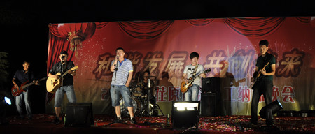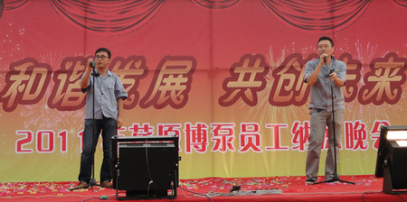 舞蹈《開門紅》寄托著荏原博泵員工對(duì)公司發(fā)展前景的美好期盼,展示了公司女職工的風(fēng)采。20多名復(fù)員軍人用一首《咱當(dāng)兵的人》抒發(fā)了他們保家衛(wèi)國(guó)、貢獻(xiàn)企業(yè)的豪情與壯志;研發(fā)部、技術(shù)部員工帶來的歌曲《跳起來》,展示了年輕人的青春與活力;質(zhì)量保證部員工在部長(zhǎng)岳東海帶領(lǐng)下,演唱了歌曲《相親相愛一家人》,演繹著荏原博泵大家庭的親情、友情。友情樂隊(duì)帶來的動(dòng)感十足的歌曲,更是將晚會(huì)的氣氛烘托到高潮。