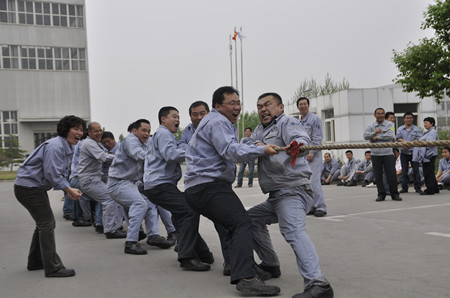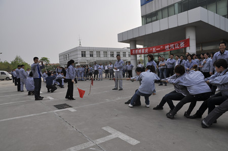 為慶祝五?一勞動(dòng)節(jié),公司工會(huì)舉辦“第五屆員工拔河比賽”。4月30日下午,在辦公樓前200多名員工參加的拔河比賽正緊張進(jìn)行。參賽隊(duì)伍共有八支男隊(duì)、四支女隊(duì)。經(jīng)過(guò)緊張的角逐,焊接物流隊(duì)以絕對(duì)的優(yōu)勢(shì)力拔頭籌獲得男子冠軍,生產(chǎn)裝配隊(duì)獲得男子亞軍;生產(chǎn)部女隊(duì)獲女子冠軍。