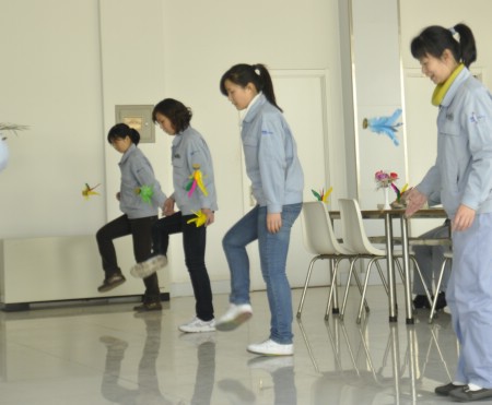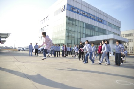 在踢毽子比賽現(xiàn)場,只見毽子上下翻飛,隊(duì)員們不急不慢,沉著應(yīng)對。在跳繩比賽現(xiàn)場,繩子在隊(duì)員手中有節(jié)奏的搖著,每個人和著自己的節(jié)奏,有的跳的輕快、有的越著急越絆腳,周圍看的員工也跟著著急。最吸引人的還是集體項(xiàng)目“跳長繩”,每個隊(duì)8名隊(duì)員,2人搖繩,其余6名隊(duì)員魚貫從跳繩中穿過,然后再從另一邊跳入,隊(duì)員們配合默契、身輕如燕 ,觀眾們加油聲此起彼伏,整個現(xiàn)場一片歡樂。最終,獲得踢毽子比賽前三名分別是:牛艷春、鹿子云、焦金玲。獲得跳繩比賽前三名分別是:張洪蘭、王陽、王春;跳長繩比賽的第一名是生產(chǎn)分會。