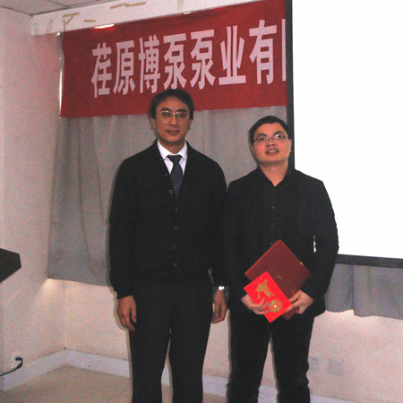 最后,對2012年度優(yōu)秀業(yè)務員――高文旭、優(yōu)秀技術(shù)工程師――夏紅軍進行了表彰,總經(jīng)理志賀進先生親自為他們頒發(fā)了證書及獎金。