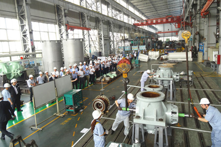 這次生產(chǎn)革新大會的目的是加速推進荏原集團內(nèi)部各工廠的生產(chǎn)革新活動的開展,目標是生產(chǎn)周期減半、庫存減半、最大限度地提高生產(chǎn)效率,降低成本,增強企業(yè)競爭力。通過生產(chǎn)革新活動,達到從現(xiàn)場改善提升到管理系統(tǒng)改善、人的改善的目標,使“產(chǎn)品制作”流程優(yōu)化。在這次大會上,公司總經(jīng)理王正軍向與會代表介紹了EMZ的經(jīng)營發(fā)展狀況,并帶領(lǐng)與會人員參觀工廠,詳細介紹了生產(chǎn)革新的進展情況。